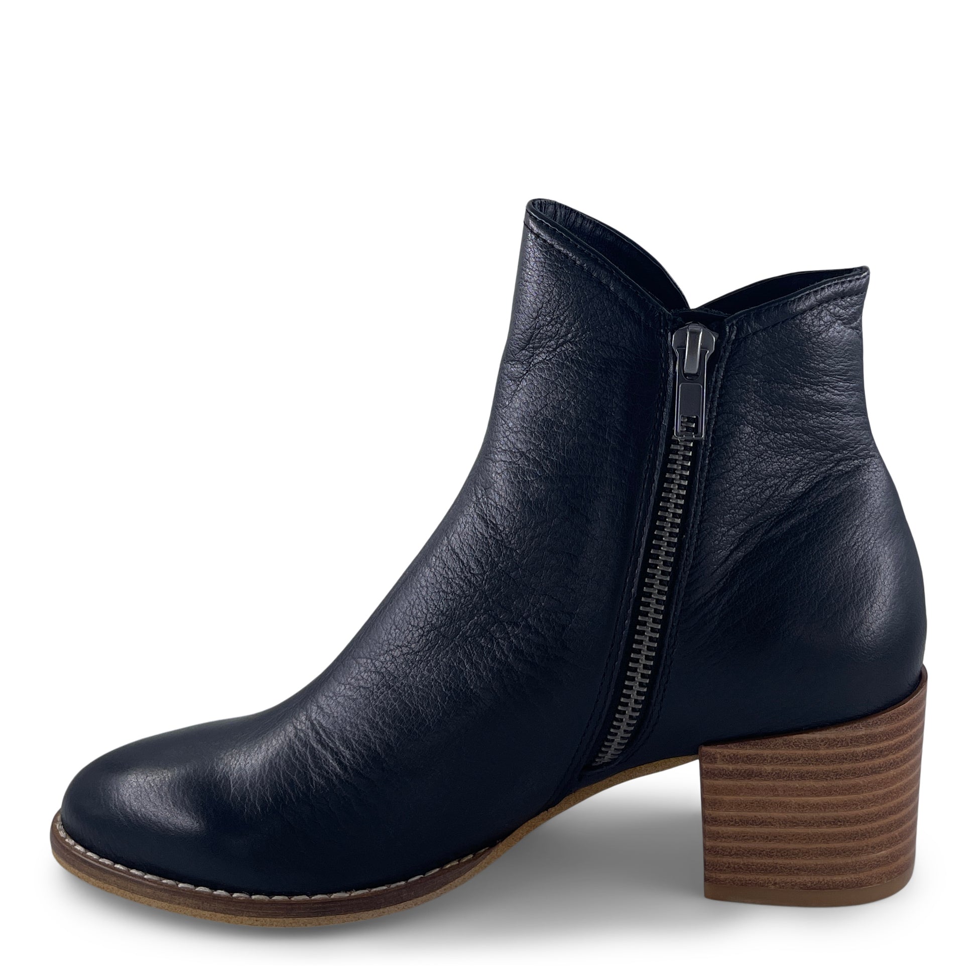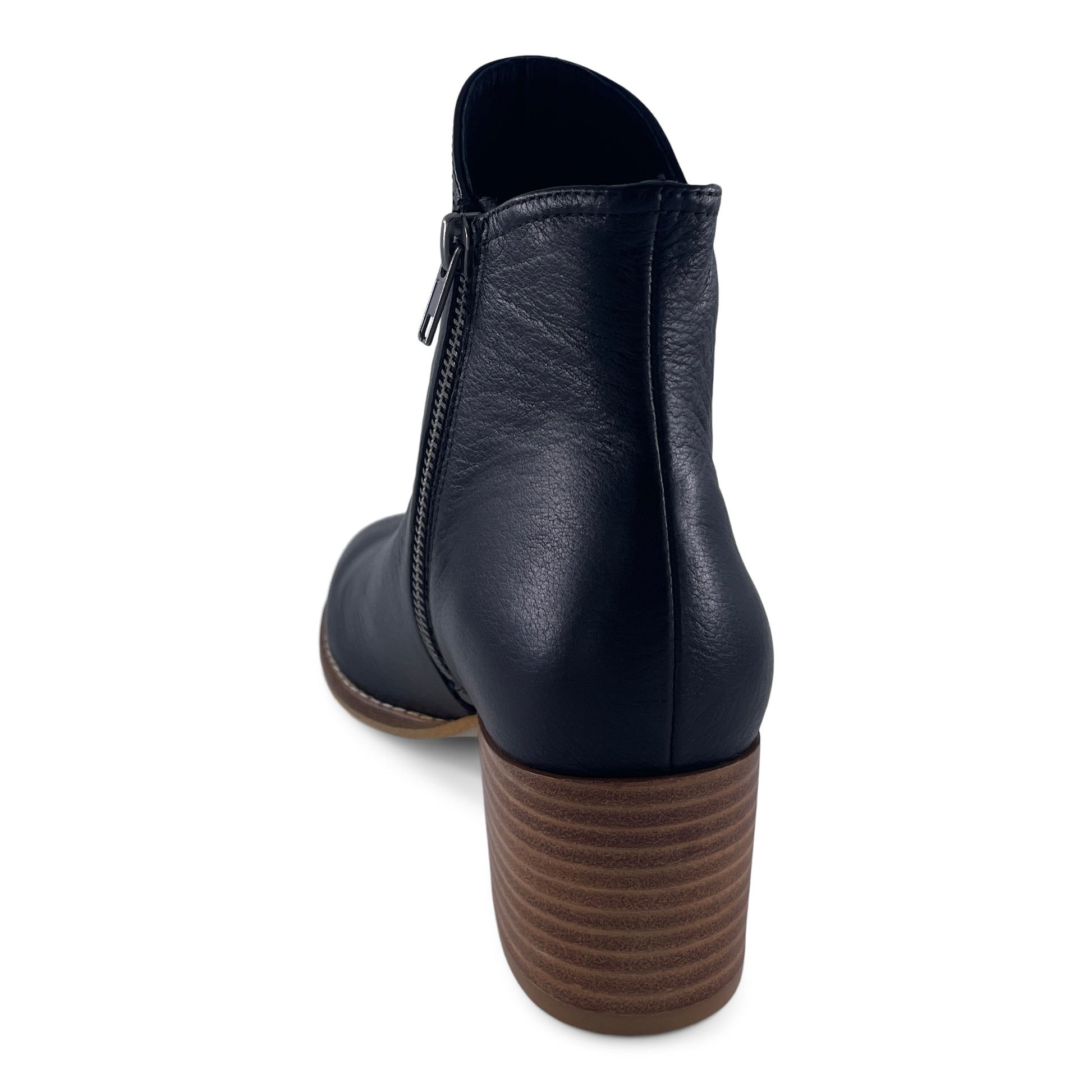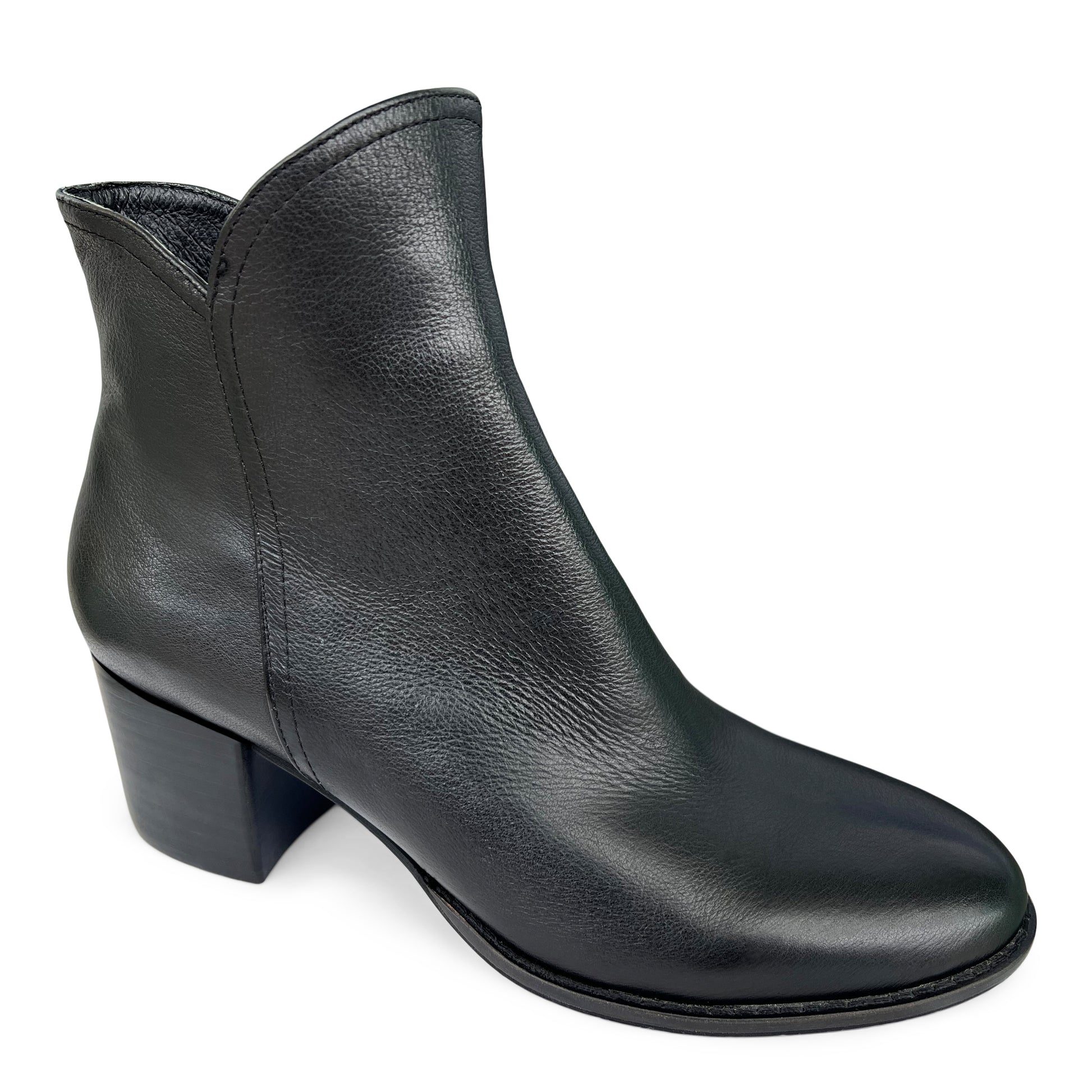 Simple lines and luxe leather give this ankle boot a minimalist appeal that complements every outfit. Coming with a convenient inside zip and wearable stacked heel, this design looks gorgeous paired with jeans and a snug mohair sweater.