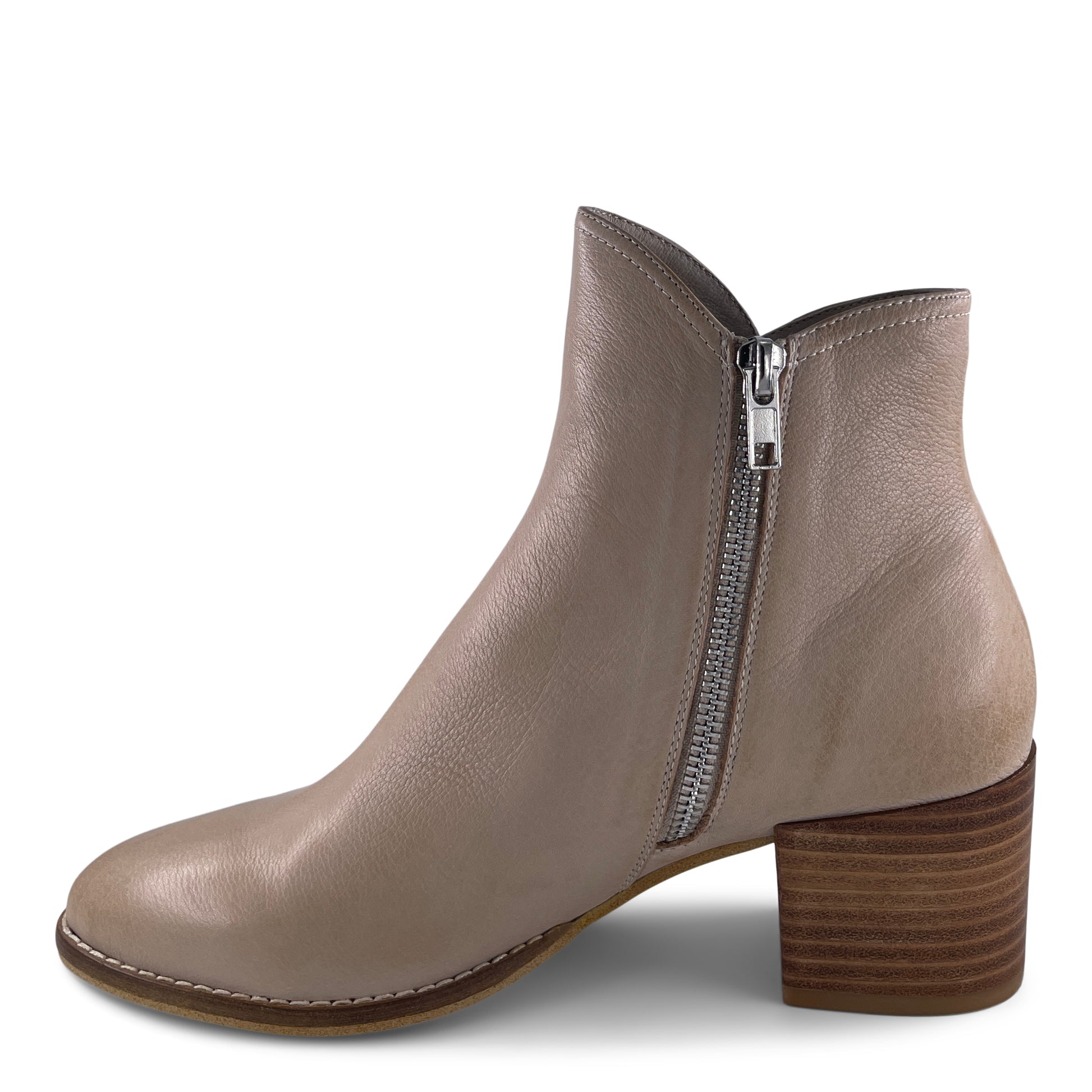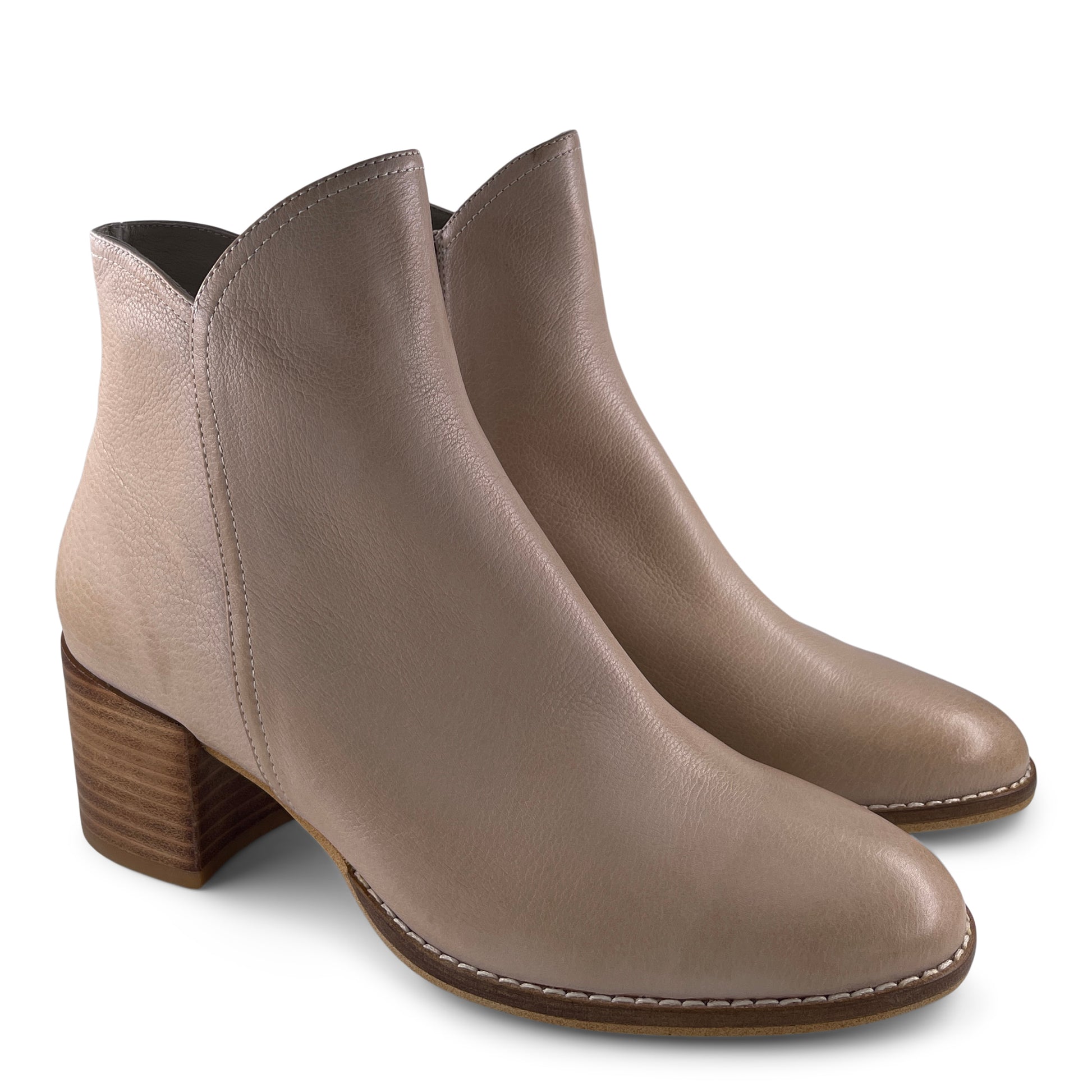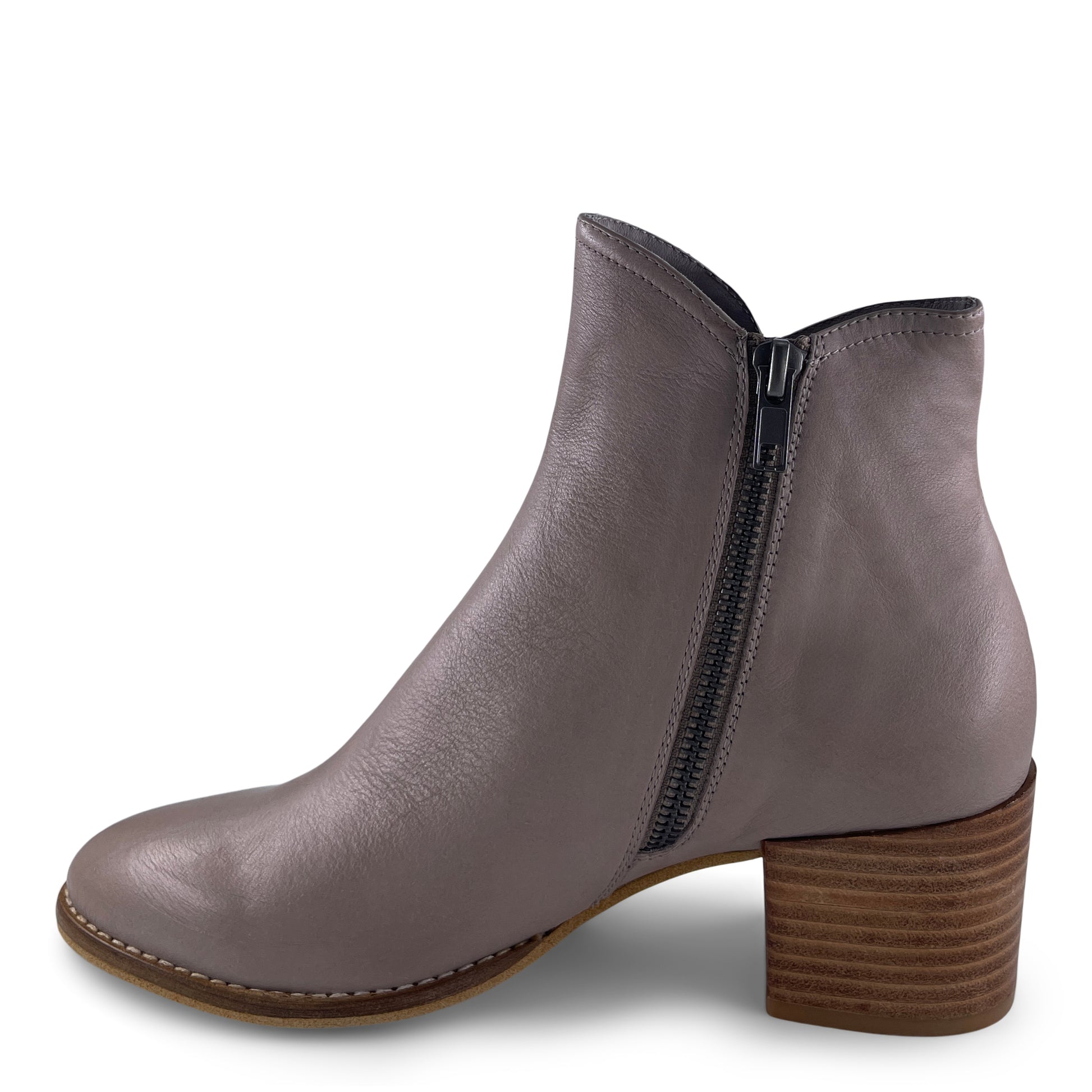 Simple lines and luxe leather give this ankle boot a minimalist appeal that complements every outfit. Coming with a convenient inside zip and wearable stacked heel, this design looks gorgeous paired with jeans and a snug mohair sweater.