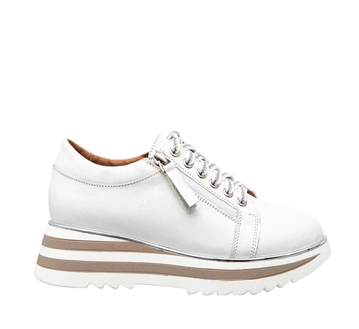 Crafted with a non-slip, light-weight flexible sole. Featuring a side zip lace up upper and latex stitched innersole. Combined with a captivating white leathered upper, complimentary striped sole and striped laces. The perfect casual/dress hybrid.