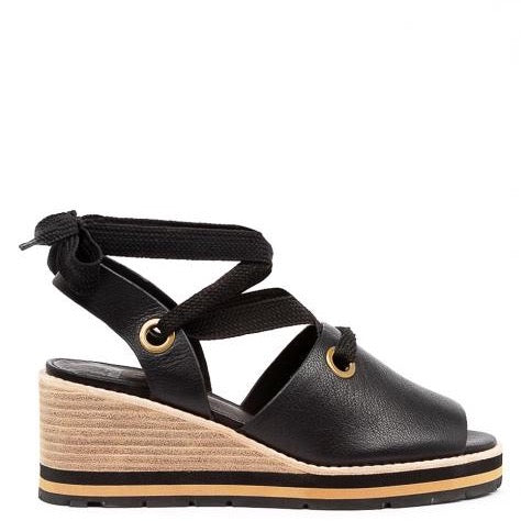 A flirty shoe for the coming of warmer days. A styled sole supporting a classic wedged heel & the finishing touch of an ankle lace. A boho beauty for a casual but cool look of this summer.