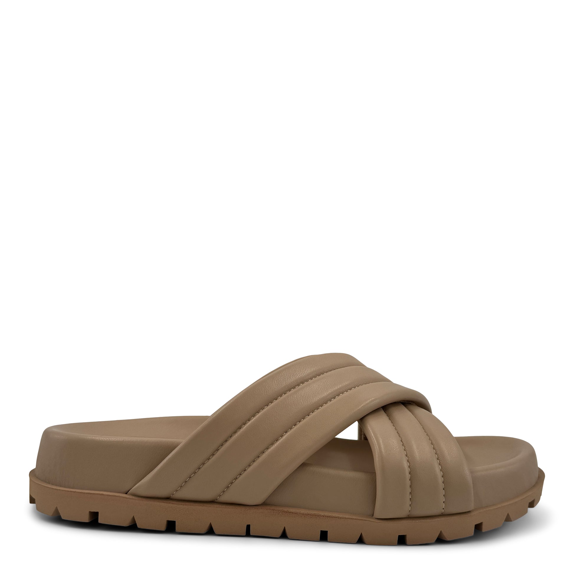 ALAINA is a slip on sandal with a cross over ribbed strap and a leather finish. A classic yet elevated sandal that can pair with any outfit.