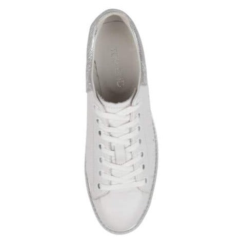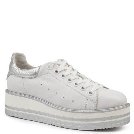 This savvy sneaker boasts a bold wedge sole and bright heel accent, at the cutting edge of the pop of colour trend. Pair with satin joggers and a velvet cap for a sports luxe texture contrast or dress up simple jeans and a denim jacket.